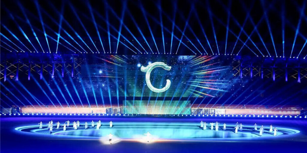 Inner Mongolia Chifeng, the opening ceremony of the 11th Inner Mongolia Autonomous Region Ethnic Minority Traditional Sports Games 2000m² large-scale customized “LED line curtain”, which is the ultimate creativity after the 14th National Games and the 15th Inner Mongolia Provincial Games, another opening ceremony of the sports provincial capital.